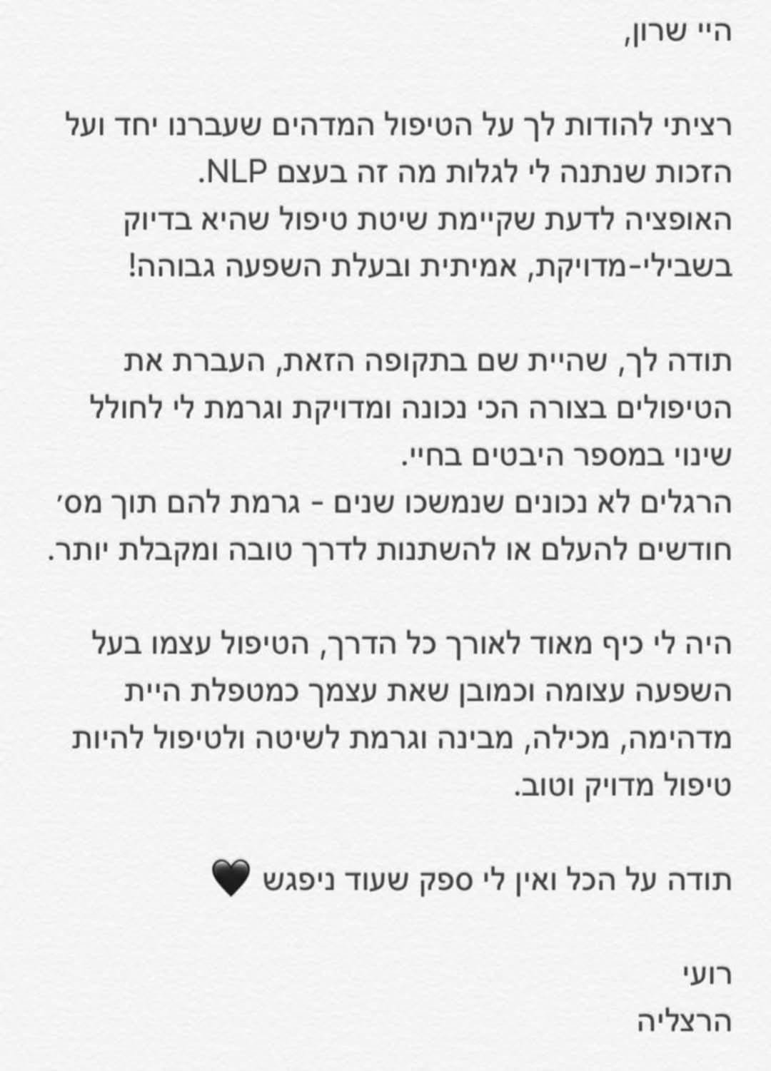 אני מאמינה בתהליך טיפולי אמיתי שנשען על חיבור אנושי עמוק, על אמון ועל שותפות בדרך.